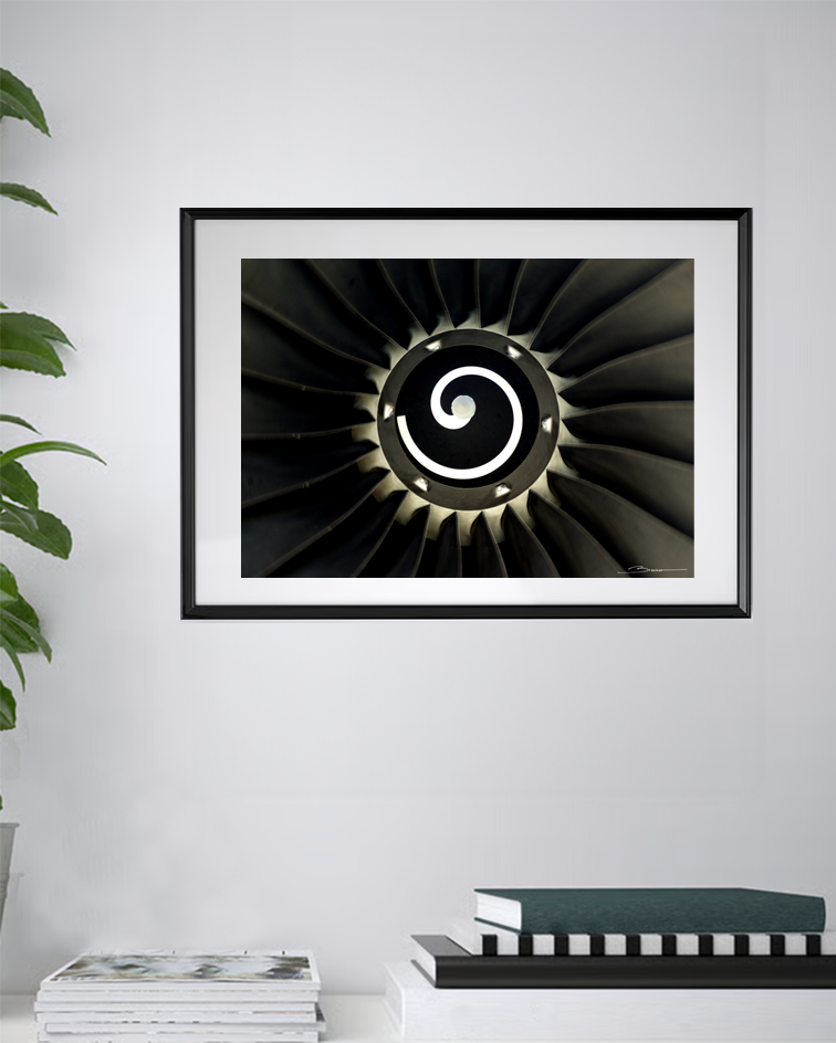 Plongez au centre du mouvement, là où le métal devient poésie et l’ingénierie une œuvre d’art. Cette photographie révèle l’intime spirale d’un réacteur d’avion, telle une fleur d’acier en pleine floraison mécanique. Un hommage visuel à la puissance contenue, au souffle du voyage et à la beauté cachée dans les entrailles des machines. L’élégance du mouvement figé, pour les amoureux de l’esthétique industrielle et du rêve aérien.