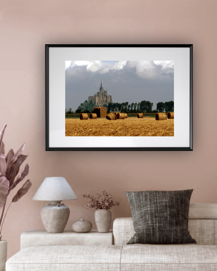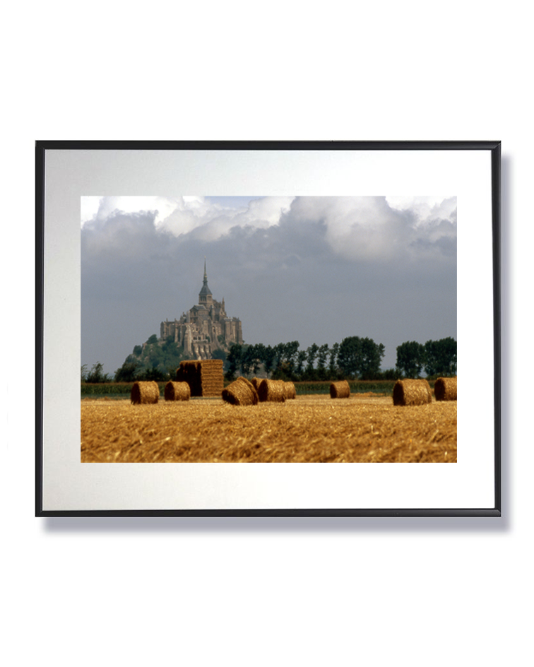 Quand les nuages s’ouvrent et que la moisson s’endort, le Mont-Saint-Michel veille sur l’horizon. Une image qui raconte la poésie normande : la rencontre entre la force de la nature et la majesté des hommes."