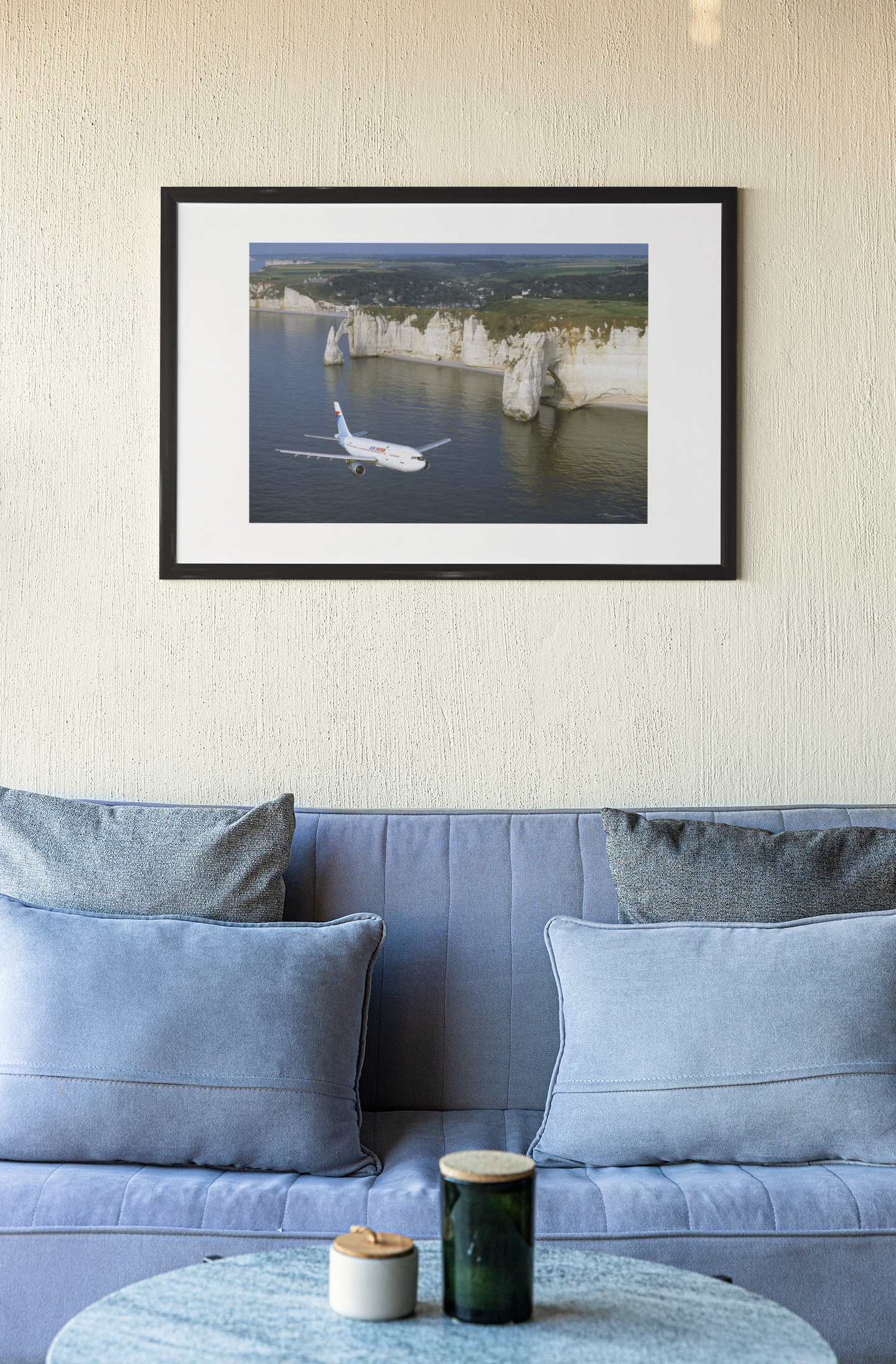 Ce cliché séduira les passionnés d’aviation, de paysages français et de photographie aérienne, apportant à chaque espace une note d’évasion et d’élégance. Réalisée avec précision, cette image est proposée sur papier photo de qualité, prête à sublimer un salon, un bureau ou une collection dédiée à l’art aéronautique, offrant chaque jour le spectacle rare d’un géant des airs frôlant la côte normande.