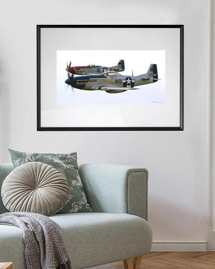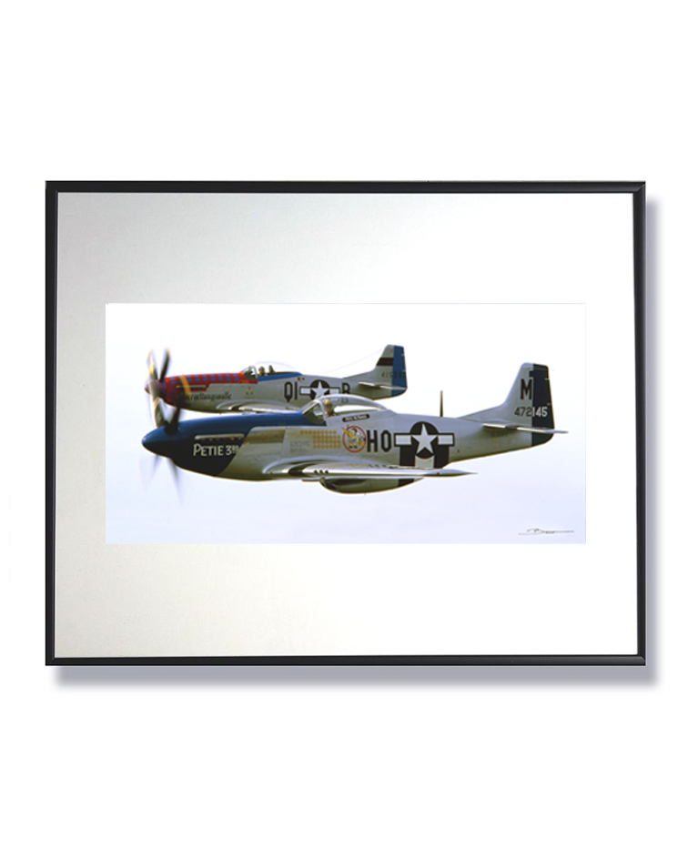 Portés par le rugissement noble du moteur Rolls-Royce Merlin, ces deux P-51 Mustang dansent dans l’azur avec une élégance sauvage. Chaque battement d’hélice chante la puissance maîtrisée, chaque sillage raconte la bravoure des pilotes qui, grâce à ce cœur mécanique, transformaient le ciel en scène de liberté. Cette photographie saisit l’instant où la machine devient poésie, et le moteur, une légende ailée.