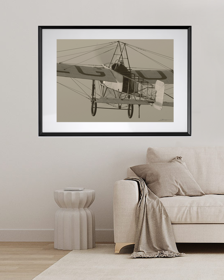 Plongée dans une époque révolue, cette photographie en noir et blanc capture un instant suspendu : celui d’un avion d’antan qui fend le ciel avec la grâce d’un rêve ancien. Telles des ailes de poésie, les câbles et les voiles murmurent les débuts audacieux de l’aviation. L’image, encadrée de silence, rend hommage à la fragilité du progrès et à l’élan d’humanité qui osa, un jour, voler. Une œuvre intemporelle pour les amoureux d’histoire, de voyage et de nostalgie aérienne.